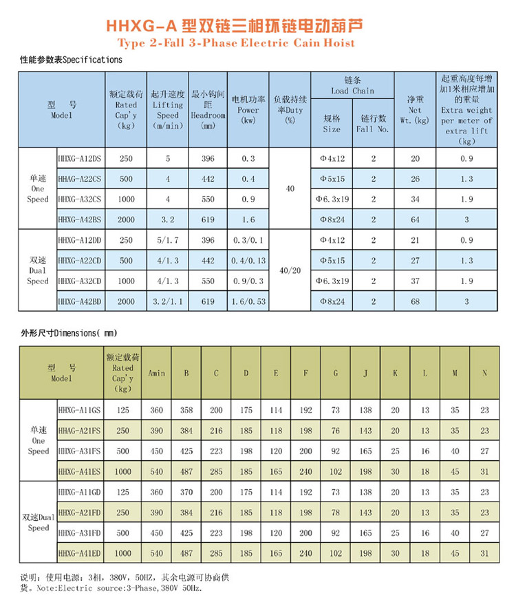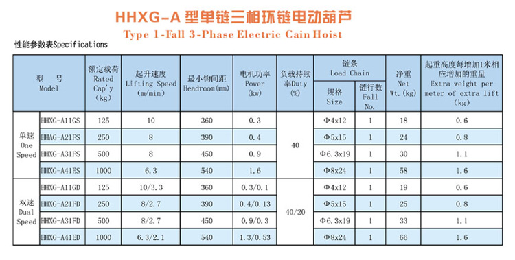 HHXG-A型0.125-2T环链电动葫芦分为:HHXG-A型单链三相环链电动葫芦、HHXG-A型双链三相环链电动葫芦、HHXG-A型单相环链电动葫芦。