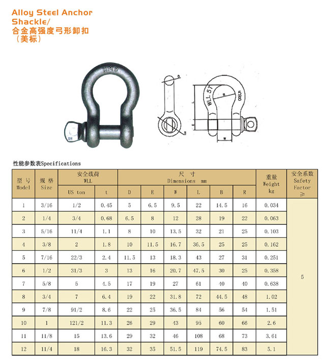 弓形卸扣被广泛应用于电力、冶金、石油、机械、铁路、化工、港口、矿山、建筑等各行各业。